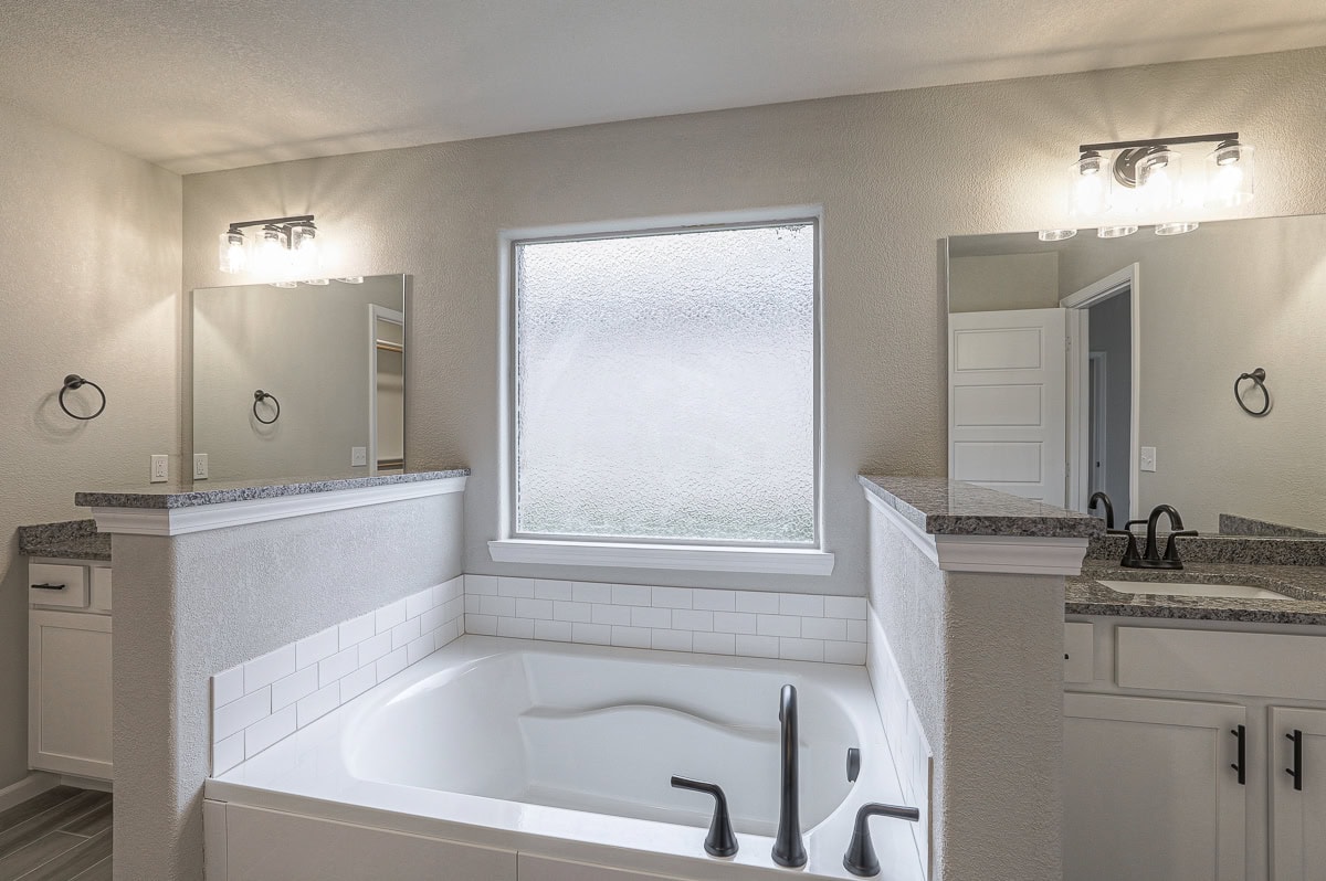 This floor plan features an all-brick exterior and a covered porch complemented by two elegant arches that create a welcoming impression. This open-concept floor plan with 10-foot ceilings in the entry, main living area, and primary bedroom, is perfect for families who enjoy spending quality time together. Its spacious kitchen features a peninsula that creates the perfect space to prepare dinner while helping children with homework. Additionally, homeowners will enjoy a fully sodded yard with a landscape package, a covered back patio, a soaker tub, and a separate shower in the master suite, as well as his and her vanities. These photos are a representation of the Angie. Selections may vary from this home and plans are subject to minor changes. Please schedule an appointment if you have any questions about this home or others.
